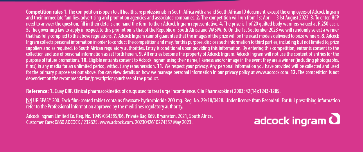 Answer the question below. Question: What is Urispas's Dosage? Name: Surname: Contact: Practice Number: Email: