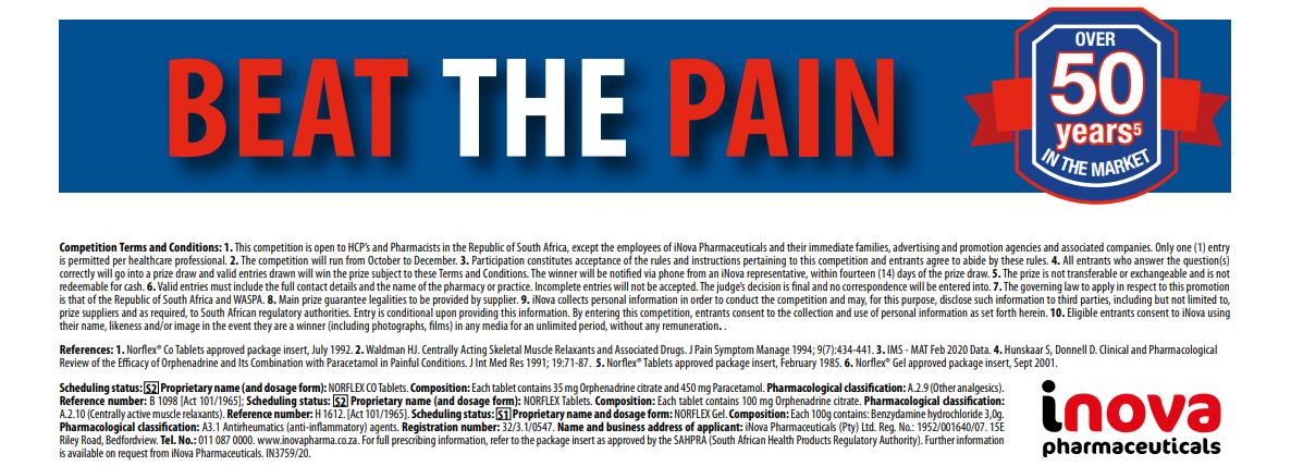 Name Surname MP / SAPC Number Practice / Pharmacy Name Contact Telephone Number Delivery Address iNova Pharmaceuticals Representative's Name A. Inflames Muscles and Joints B. Neck and Shoulder Tension C. Tension Headache D. Muscle Pain E. Lower Back Pain A. Inflames Muscles and Joints B. Neck and Shoulder Tension C. Tension Headache D. Muscle Pain E. Lower Back Pain A. Inflames Muscles and Joints B. Neck and Shoulder Tension C. Tension Headache D. Muscle Pain E. Lower Back Pain A. Inflames Muscles and Joints B. Neck and Shoulder Tension C. Tension Headache D. Muscle Pain E. Lower Back Pain A. Inflames Muscles and Joints B. Neck and Shoulder Tension C. Tension Headache D. Muscle Pain E. Lower Back Pain