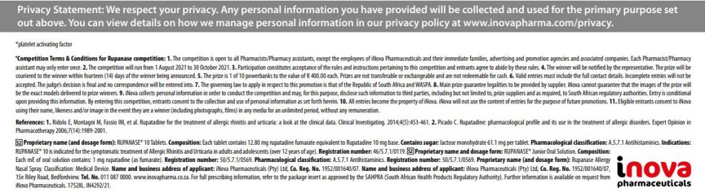 RUPANASE® tablets/syrup treat late phase allergy symptoms such as: